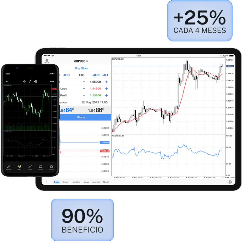 Todos nuestros traders tienen acceso a un plan de escalado. Esto significa que, si operas con constancia y buen control del riesgo.